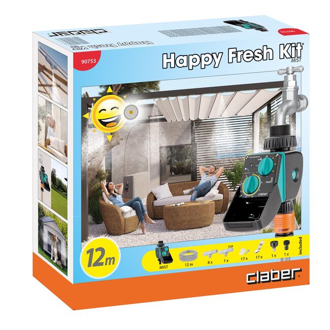 1 programmatore Mist, 12 mt tubo, 8 micronebulizzatori in linea, 1 micronebulizzatore fine linea, 17 clip + viti, 17 clip a molletta, 1 presa fil. maschio 3/4", 1 raccordo con filtro lavabile