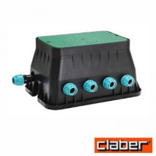 Pozzetto medio attrezzato con 4 elettrovalvole da 24V. Premontato con i raccordi 25” necessari e pronto all’installazione. Serve 4 linee d’irrigazione. Collegabile con programmatori a 24V CLABER HUNTER ORBIT RAIN BIRD TORO NELSON ECCC